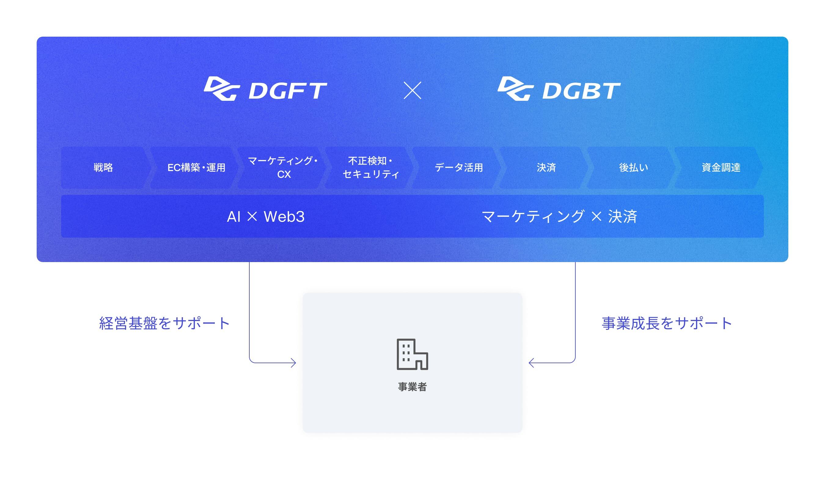 両社は、デジタルガレージが培ってきた生成AI、web3といった先端テクノロジーを融合し、「マーケティング×決済」「AI×web3」など異なるテクノロジーを掛け合わせ、持続的なビジネスの成長を共創します。