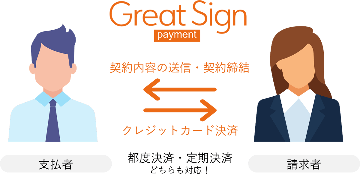 従来、電子契約に付随する請求手続きは、別途の請求書発行、入金管理を行う必要がありました。また、支払いが遅延した際の督促や売掛金を回収できないリスクなどが発生することもあります。「Great Sign Payment」は、契約の締結後に発生する請求手続きまでの業務をオンライン上でシームレスに完結できるため、「Great Sign」利用者の業務プロセスの効率化を実現します。「Great Sign」利用者は、「Great Sign Payment」で、契約書の送信時に支払額や請求タイミングなどの決済情報を追加するだけで、請求業務を完了できます。加えて、クレジットカード会社で売掛金の代金回収を行うため、未回収リスクも回避します。