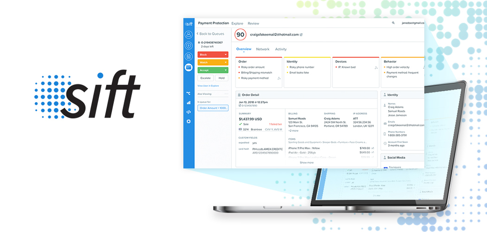 Siftは、クレジットカードの不正利用やアカウント乗っ取りなど、ECサイトやオンライン上での不正や悪用をAIにより即時に識別する不正検知・防止ソリューションで、チャージバック等の不正被害削減や不正対策に係るオペレーションの効率化、収益増加を実現します。