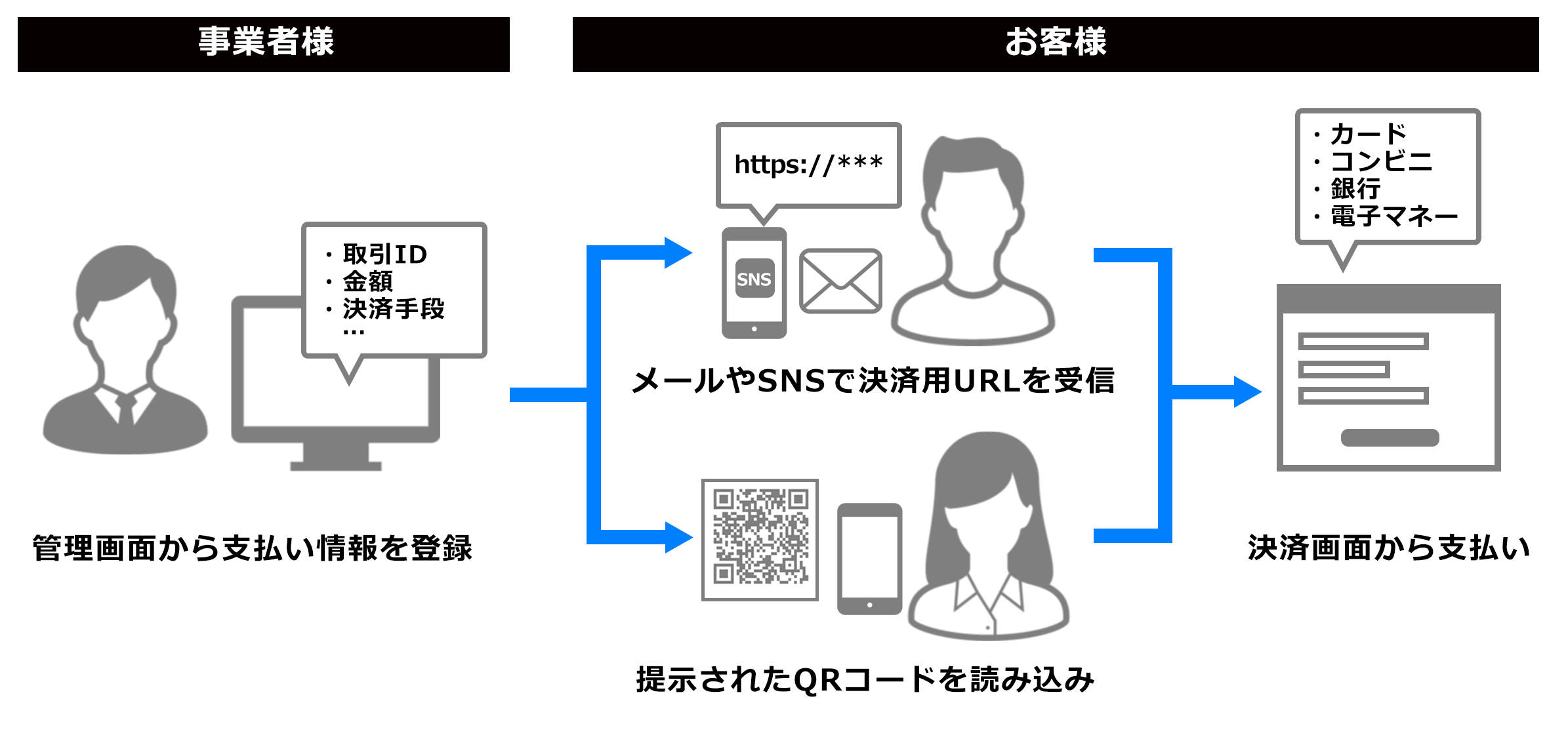 今回、「DIRECT STORE」で採用されたメールリンク機能は、お客様に決済用URLをメールやSNS等で案内し、URLの押下で表示される決済画面から支払いを行う機能で、クレジットカード決済、コンビニ決済、銀行決済(Pay-easy)と消費者ニーズの高い主要な決済手段に対応しています。「VeriTrans4G」管理画面より、決済手段、支払い有効期限、メールアドレスや取引IDなど、支払いに必要な項目を数点登録するのみで決済画面にリンクするURLが発行され、決済用URLまたはQRコードの発行か、システムから決済用メールを自動送信するかの選択ができるため、お客様とのコミュニケーション手段に応じた案内が可能です。また、メールリンク機能の導入にあたりシステム開発が不要なため、ECサイトを持たない事業者様や予約・見積確認後に決済を行う事業者様のほか、スピーディーに決済サービスを導入したいといったケースにも活用されており、株式会社ルミネが展開するオンライン接客・販売サービス「ルミネカードWEB決済サービス」*にも採用されています。