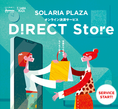 「DIRECT STORE」は、ソラリアプラザ館内のテナントスタッフとお客様が電話やメール、SNSなどで直接連絡を取り、商品購入できるサービスです。商品の購入を希望するお客様に、テナントスタッフがメールやSNSのダイレクトメッセージなどで決済ページのURLを送付することで支払い手続きを行い、後日商品が配送される仕組みです。9月22日のサービス開始時には、ESTNATION、CONVERSE TOKYO、Bshop、ABC-MART/Charlotteなど、アパレル、雑貨店を中心にソラリアプラザの28店舗で利用することが可能です。