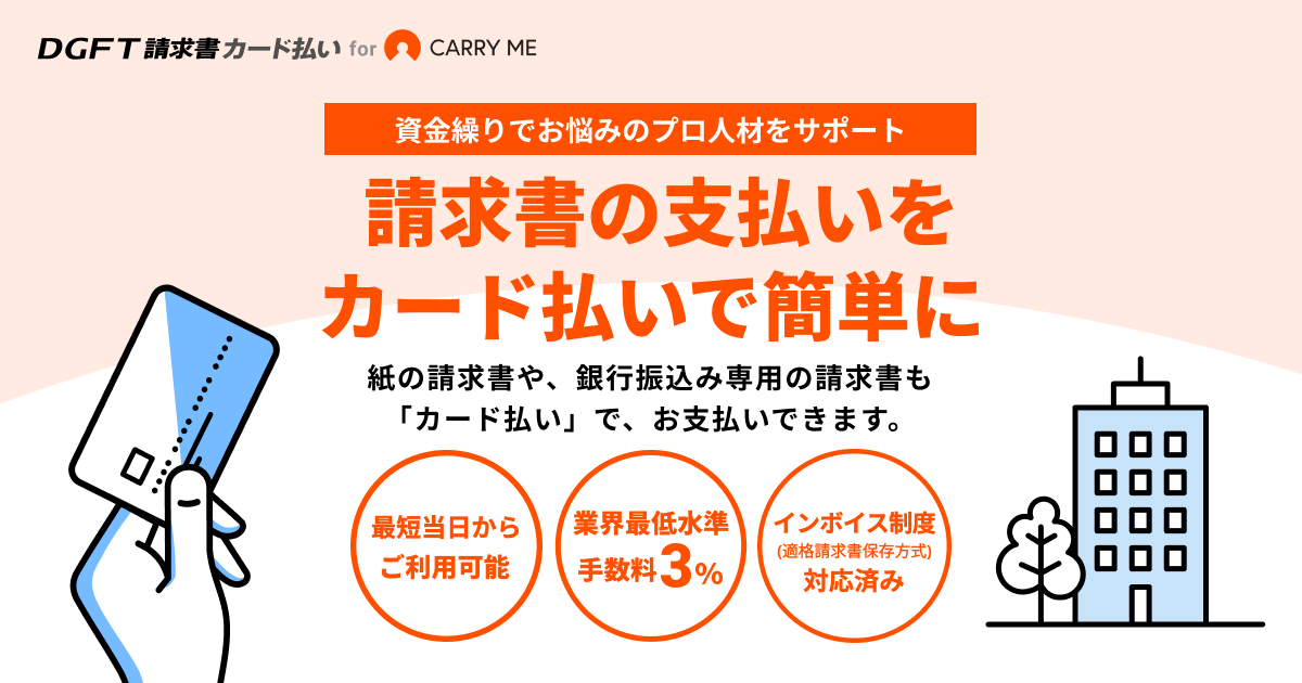 デジタルガレージ、「キャリーミー」に登録するプロ人材に向け、B2B決済サービス「DGFT請求書カード払い for CARRY ME」を提供開始