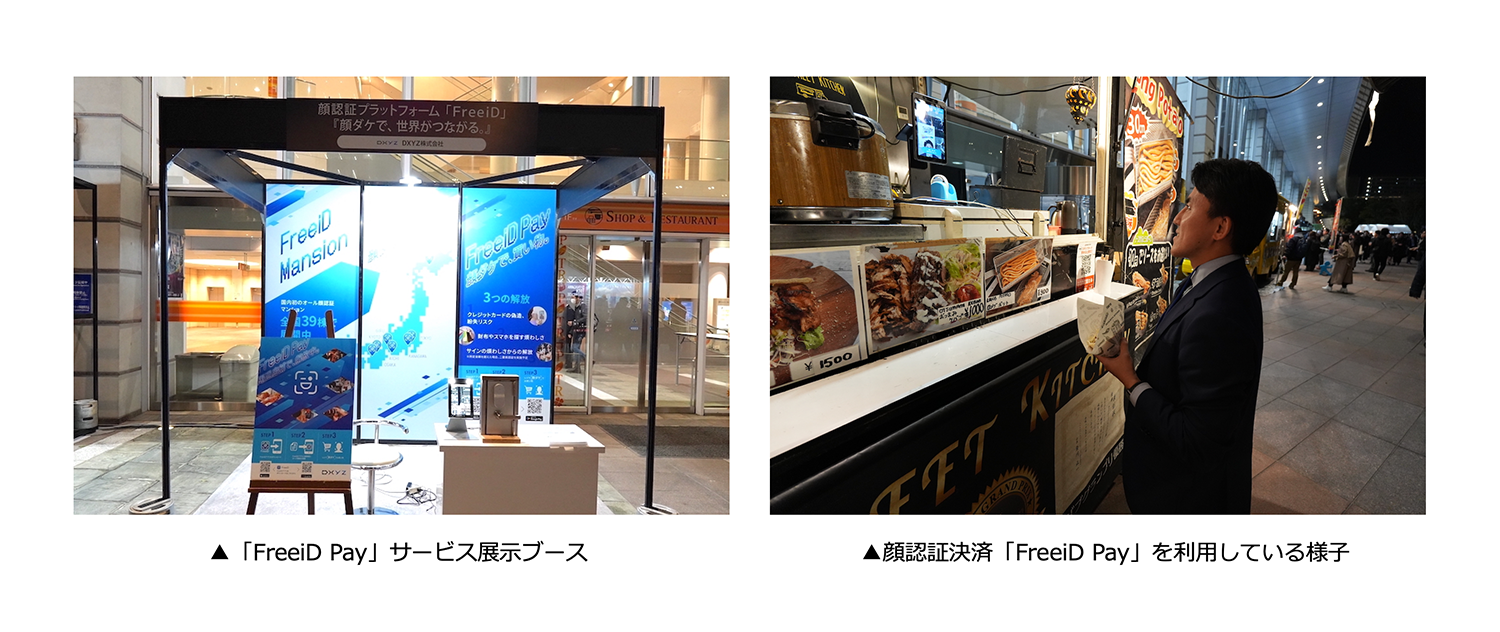 株式会社DGフィナンシャルテクノロジー(本社:東京都渋谷区、代表取締役社長共同COO:篠 寛、以下、DGFT)と、DXYZ株式会社 (読み:ディクシーズ、本社:東京都新宿区、取締役社長:木村 晋太郎、以下、DXYZ) は、先端テクノロジーの体験イベント「SHINAGAWA TECH SHOWCASE」(日程:2024年3月27日~同年3月29日、場所:品川インターシティ)にて、顔認証決済サービス「FreeiD Pay」(読み:フリード ペイ)の実証提供を実施し、延べ243名の来場者に、決済金額では約24万円分、頻度では全決済のうち約5回に1回、ご利用いただく結果を得ましたのでお知らせいたします。