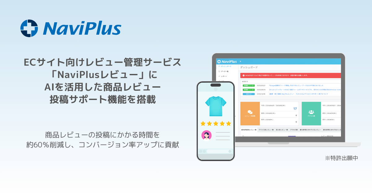ナビプラス、ECサイト向けレビュー管理サービス「NaviPlusレビュー」にAIを活用した、商品レビュー投稿サポート機能を搭載