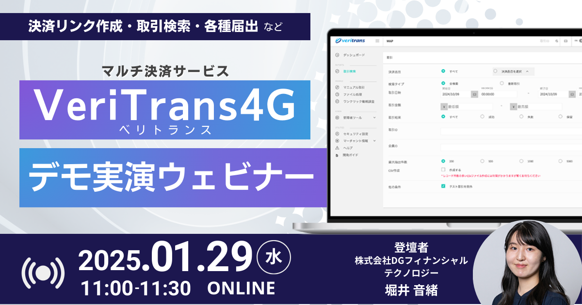 【参加無料!】マルチ決済サービスVeriTrans4G(ベリトランス4G)で実現できることを、実際の管理画面を用いてご紹介いたします。